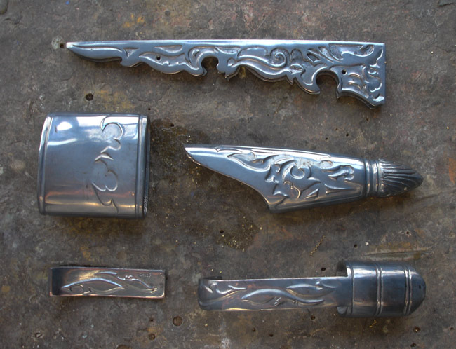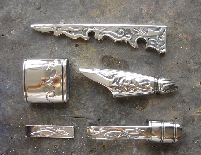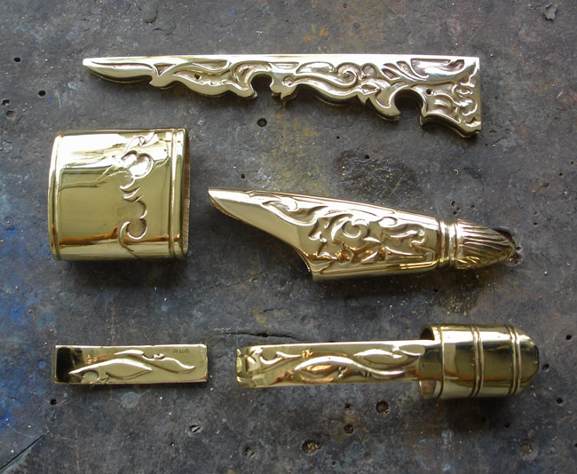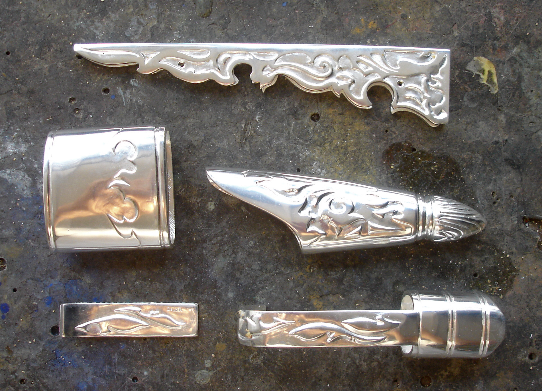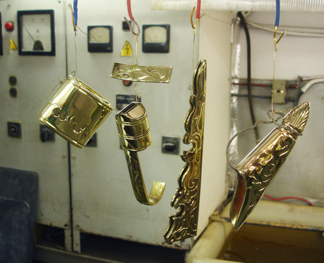 Ci dessous quelques photos de l'étape d'argenture et de patine des éléments en bronze :