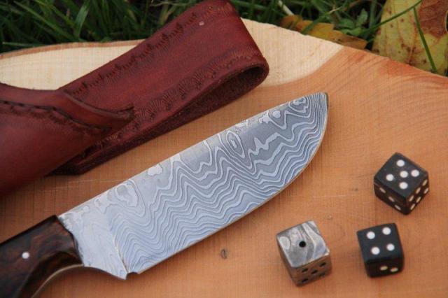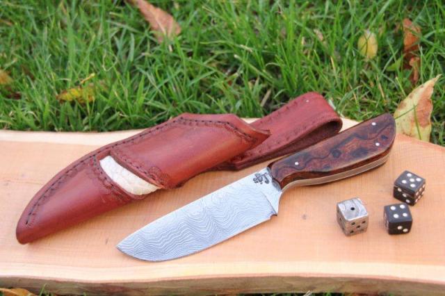 J'espère qu'il vous plaira : un damas réalisé en 90MCV8 et 15N20, plaquettes en bois de fer. Il mesure 21 cm pour 11 cm de tranchant.