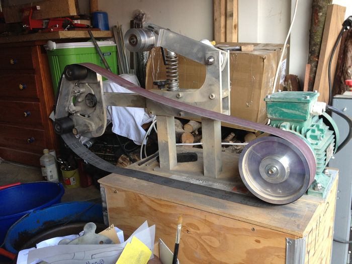 Il a un moteur tri alimenté par un variateur en 220 volts, un châssis en aluminium, galet de réglage en aluminium, bras de réglage pour tension de la bande avec 2 roues de contact lisses de diamètre 50, plus une petite roue de contact de diamètre 25.