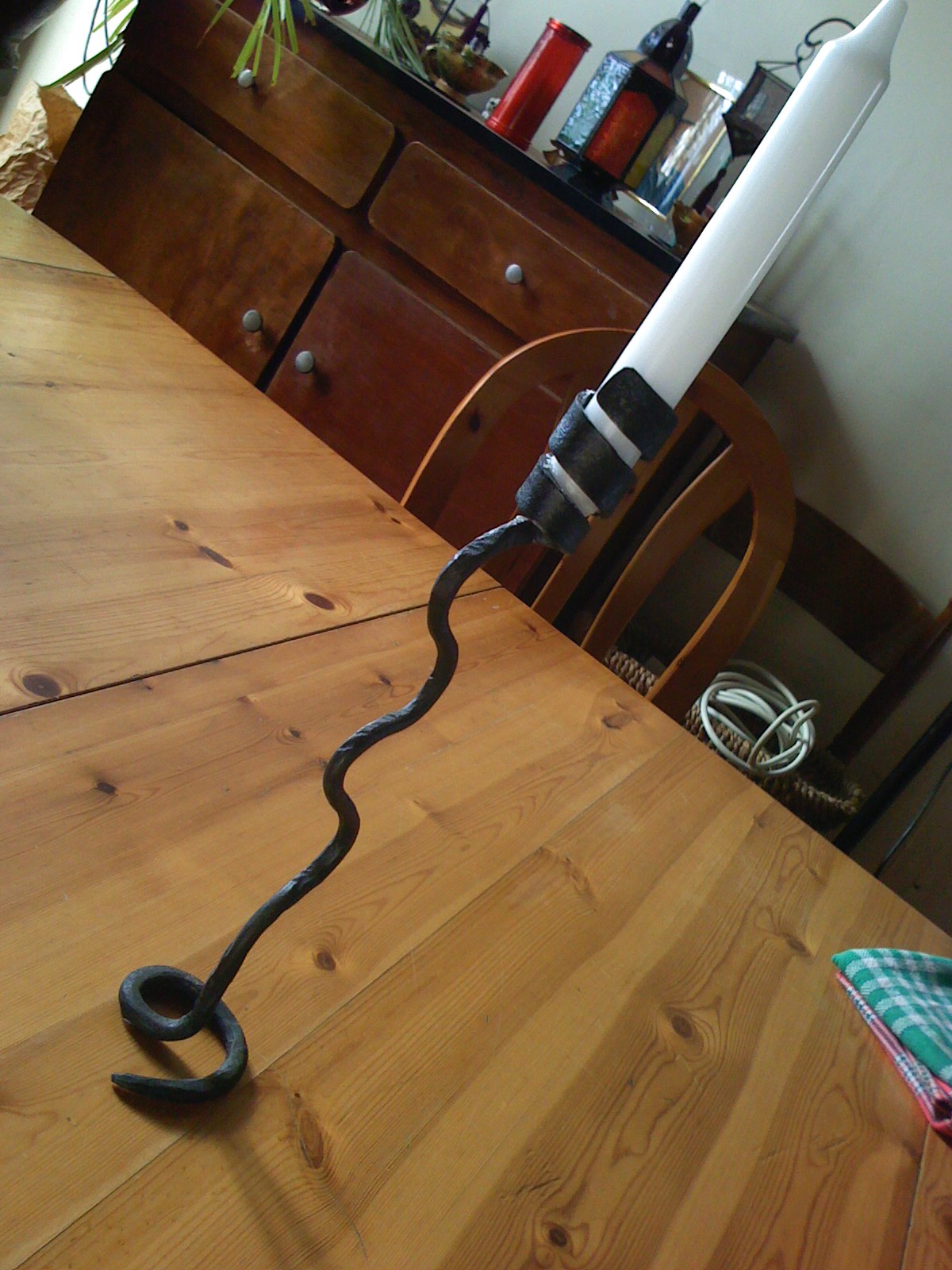 j'avais envie de montrer ce petit bougeoir que j'ai forgé chez un pote qui n'avait qu'une enclume, une forge, un marteau et quelque barres de ferraille.