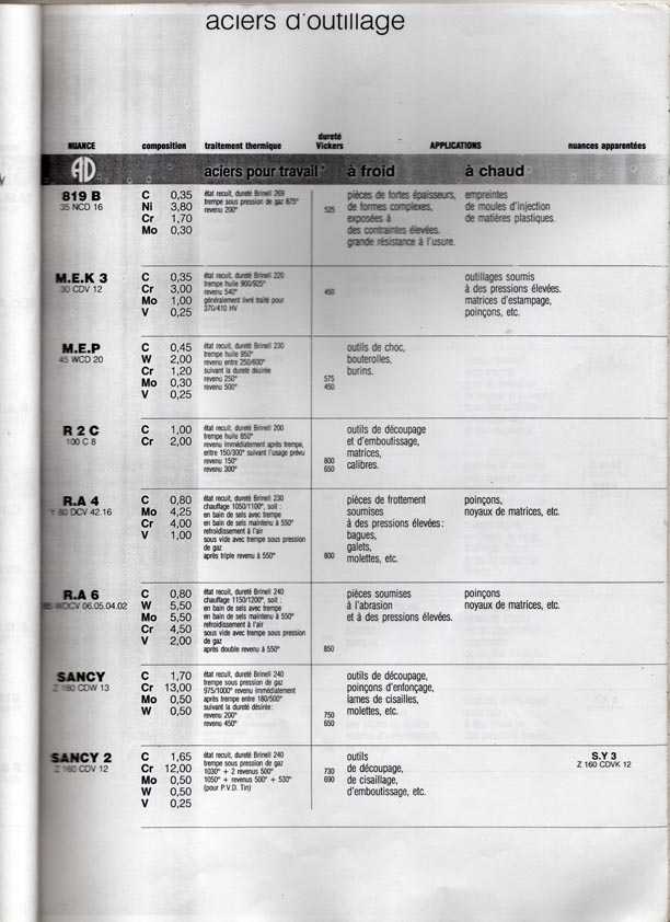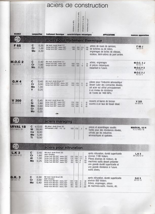en faisant du rangement dans ma doc (une fois n'est pas coutume...), j'ai retrouvé des photocopies d'un catalogue "Aubert et Duval", fabricant français d'acier haute qualité que j'avais récupéré lorsque je travaillais dans l'industrie.