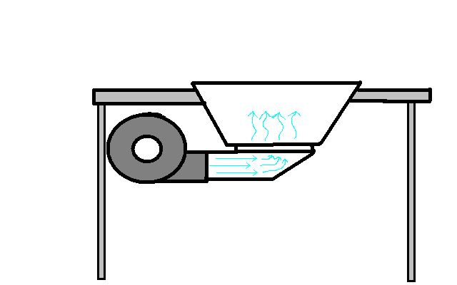 Ensuite, la gueule de loup avec l'assemblage cendrier/buse/ventilateur :