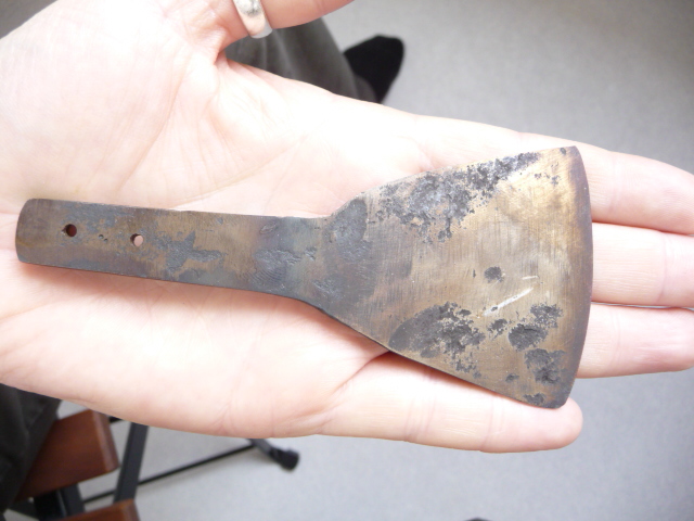 J'ai effectué un nouveau recuit, un nouveau revenu pour les trois lames. A peine une demi-heure, et le bronze déjà passé... Tout pareil...