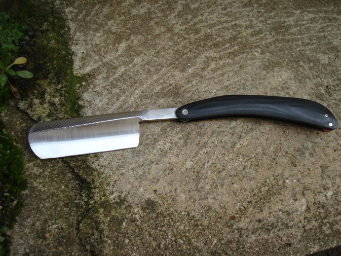 Niveau traitement thermique : je n'ai pas été très joueur. On dit souvent que pour un rasoir, il faut absolument une trempe à l'eau. J'ai préféré opter pour la sécurité même si on perd surement un ou deux rockwell en base : le tranchant d'un rasoir est si souvent entretenu que je ne pense pas que cela soit un gros gros soucis.