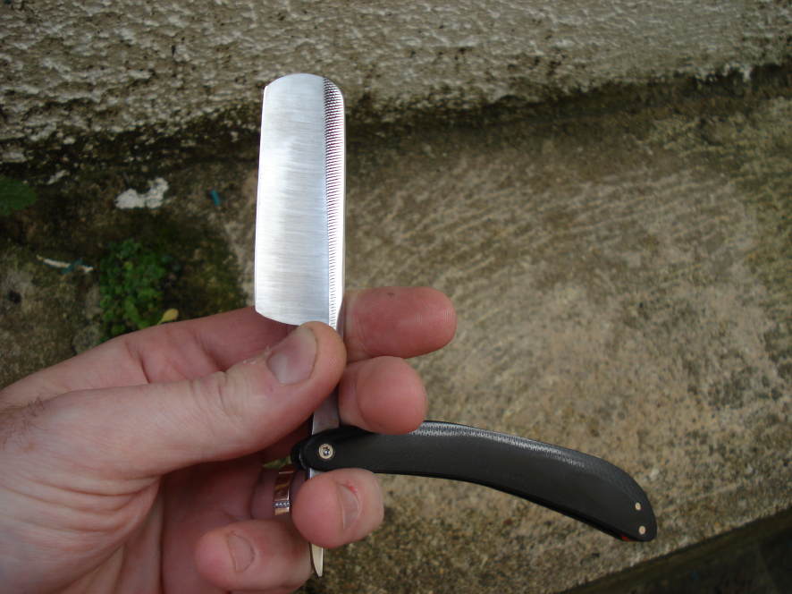 Ce qu'il est intéressant de préciser, c'est que les rasoirs industriels ne sont quasiment jamais livrés "prêts à raser". Le temps d'affutage serait trop important pour être rentable et par conséquent cette "préparation" est laissée à l'utilisateur. Cela demande un peu de courage et de pratique. Personnellement, je suis loin d'être au point dans ce domaine et je tâtonne également. J'ai échangé un rasoir déjà "travaillé" afin d'avoir un élément de comparaison et de pouvoir travailler correctement (et me raser le matin par la même occasion).
