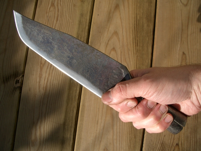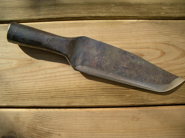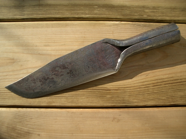 Ça vaudrait peut être le coup de faire un essai avec un plat plus fin. D'après ce que je vois sur les photos, la douille a l'air assez épaisse, je pense que le couteau serait plus agréable à l'usage s'il était plus léger.