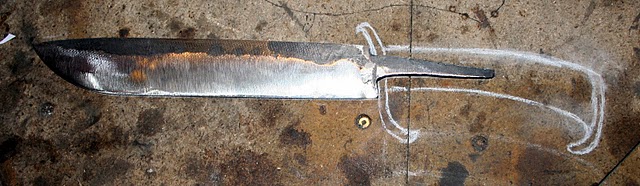 En sortie de trempe, il n'y avait aucun voilage (c'était mon souci premier) et j'ai contrôlé à la lime d'affutage tout le tranchant : tout était OK.