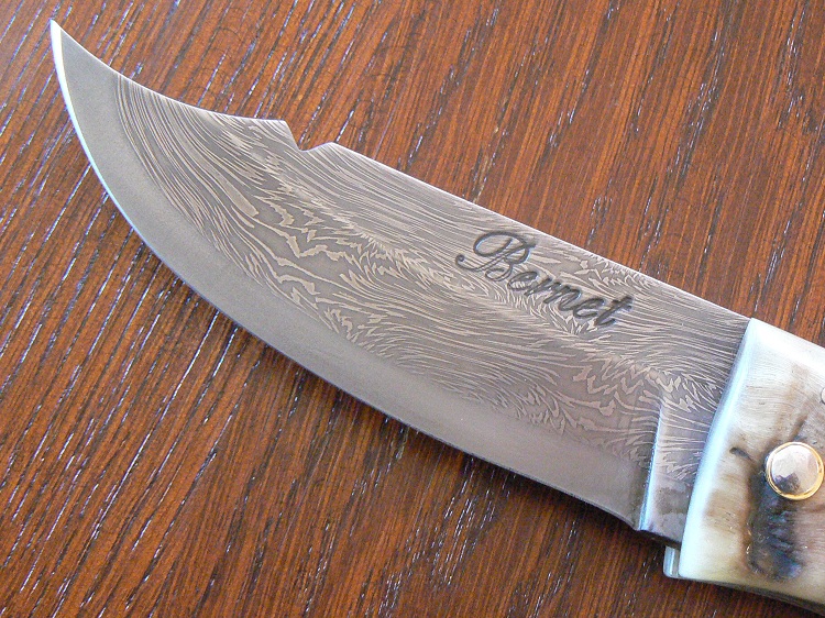 Il est doté d'une lame en damas explosion, deux barreaux de XC75/15n20 et tranchant rapporté en XC80.