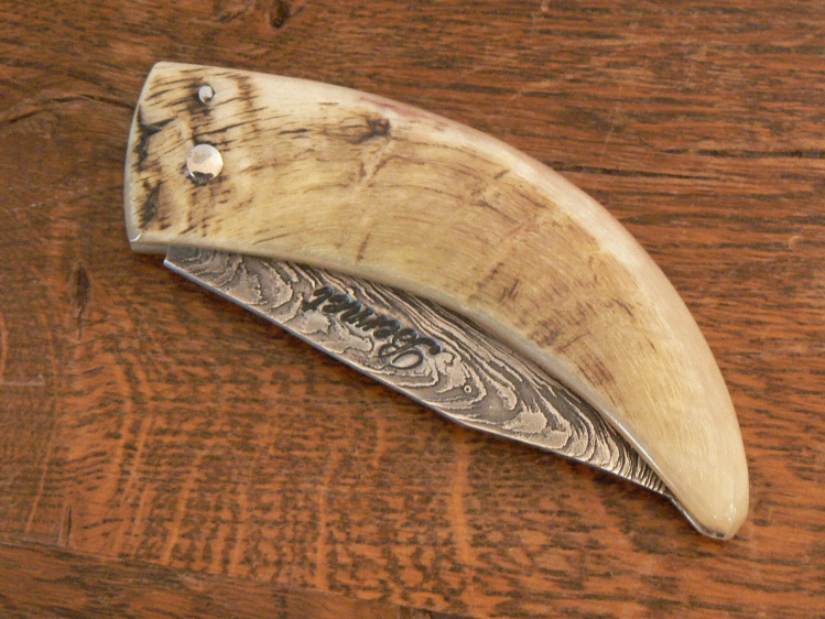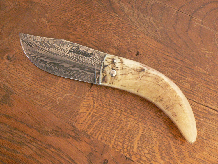 Le manche est en bélier ; le damas "plume" fait de 15n20 et xc75.