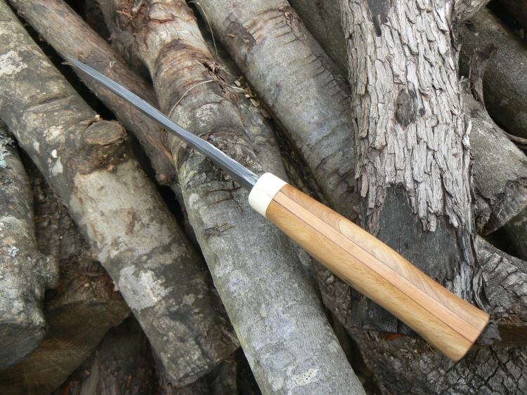 - garde en ivoire, plaquettes en olivier et intercalaire en prunier.