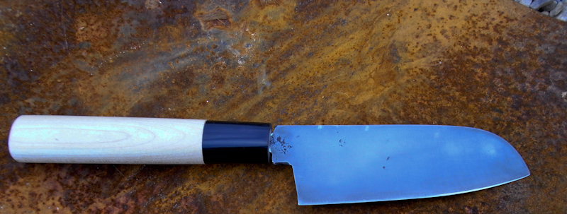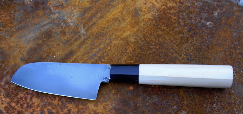 Inspiré du santoku japonais, forgé dans un plat de 100C6 de chez Achim (6mm d’épaisseur, je crois).
