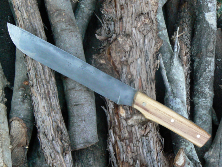 La lame est en acier xc75 forgé de 3 millimètres d'épaisseur, 19 centimètres de tranchant et 31,5 centimètres de long.
