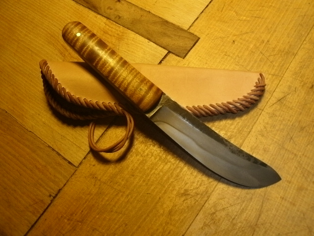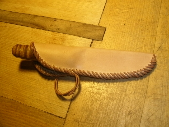 L'étui est en cuir huilé, pour la patine, le temps fera le reste. La première photo est la plus proche de la teinte et du rendu du manche. Etrangement, la lumière du jour ne met pas en valeur le bois.
