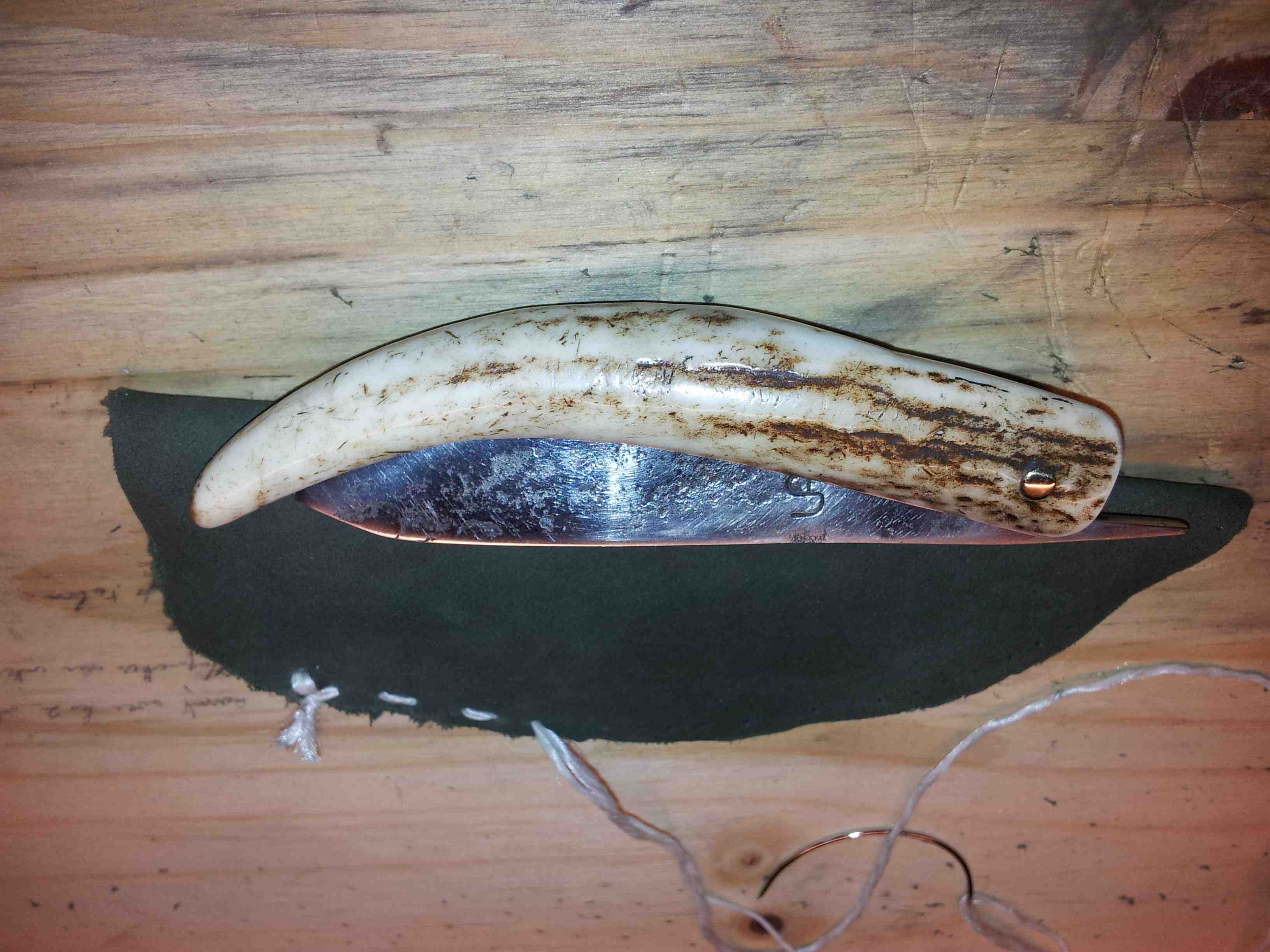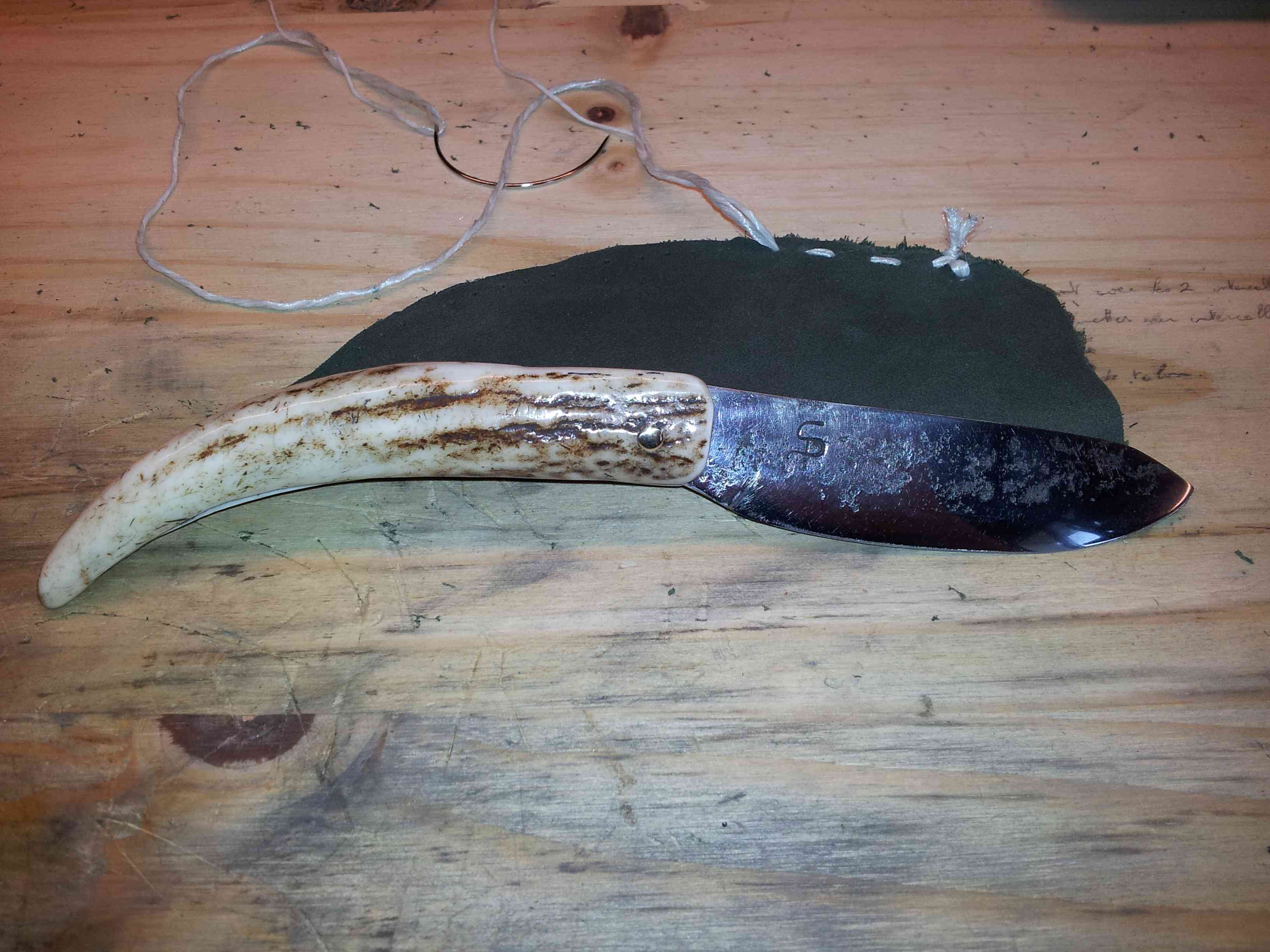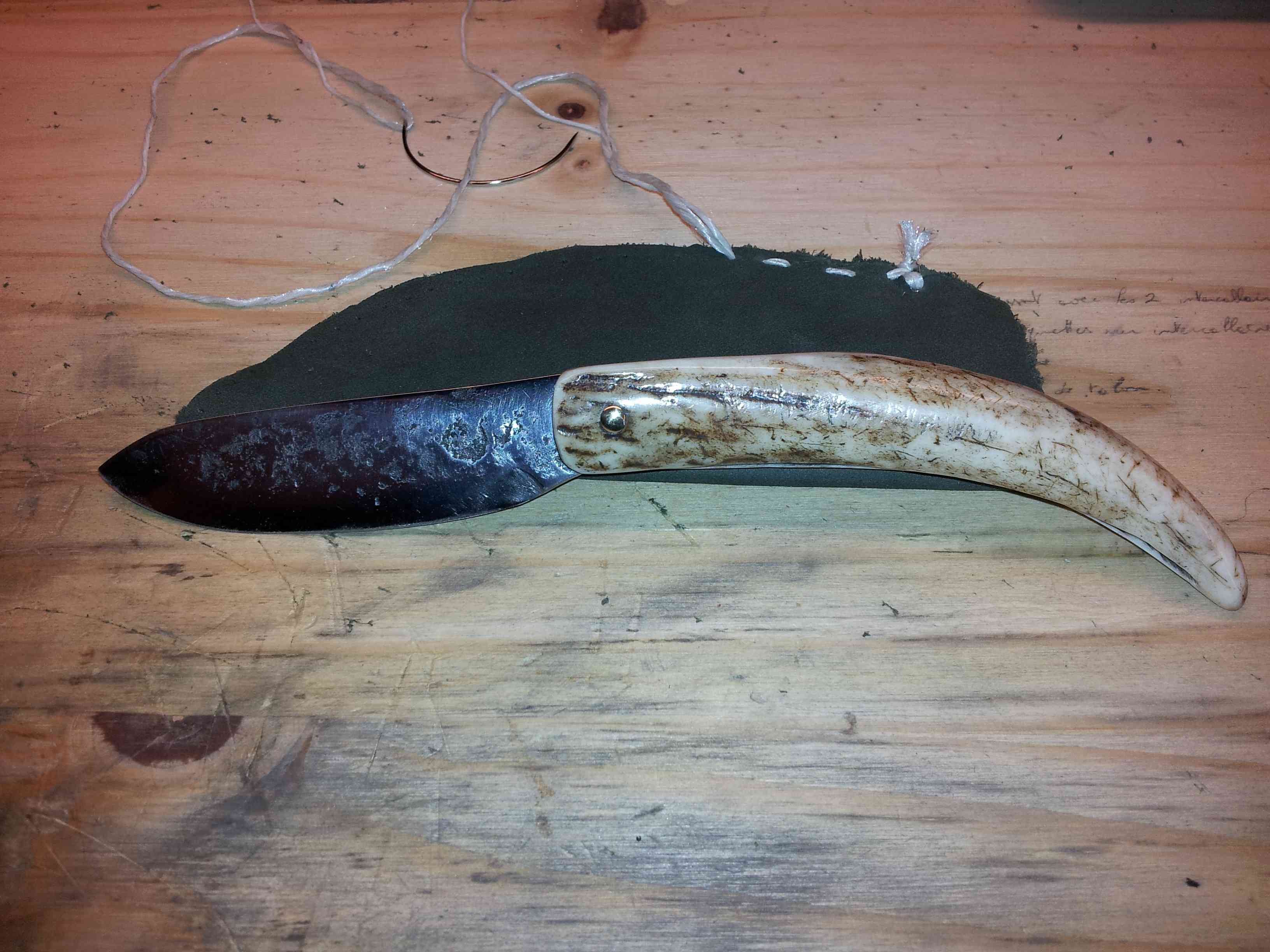 Le manche est un andouiller de bois de cerf européen (Haute-Corrèze ). J'ai gardé les traces de forgeage par souci esthétique.