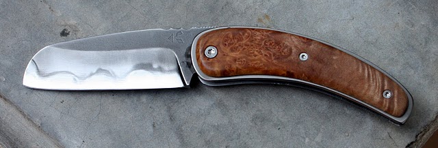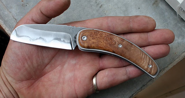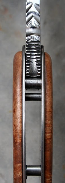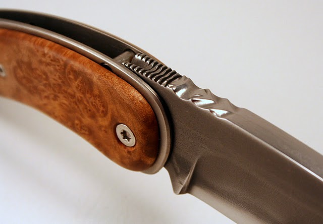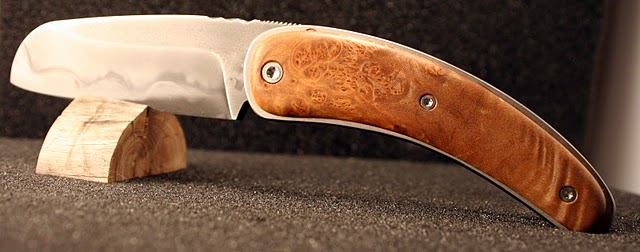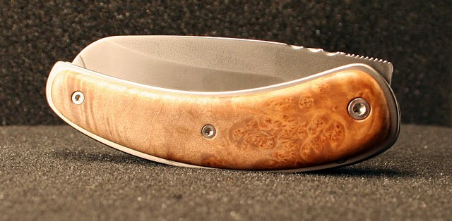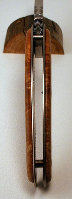 Ben, pour la friction de la lame, je n'ai pas fait d'ajustage particulier et il n'y a vraiment pas de points durs. Je pense que cela vient du fait que je n'ai pas mis d'entretoise intermédiaire vers le milieu du manche comme d'habitude et du coup, cela fait moins de contraintes proches de l'axe. Là du coup la flexibilité normale des matériaux fait le reste.