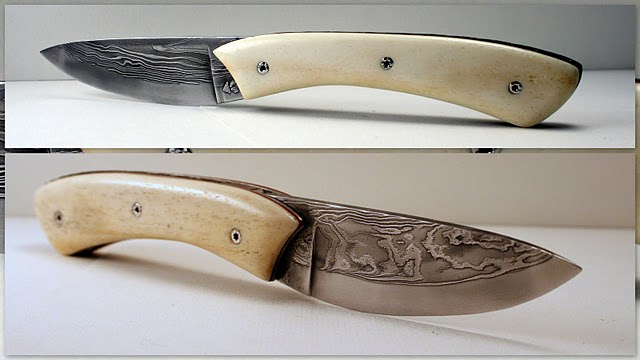 Lame en damas 90MCV8 et 15N20 (108 couches) et tranchant rapporté en XC75
