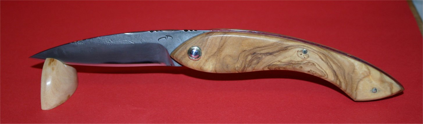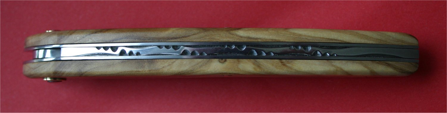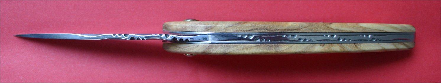 La lame est effilée tranchant de 8,5 cm épaisseur max de 3 mm et hauteur max de 21 mm, émouture plate.
