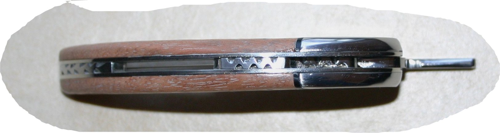 Guillochage sur le dos de la lame, sur les intercalaires coté extérieur et intérieur.