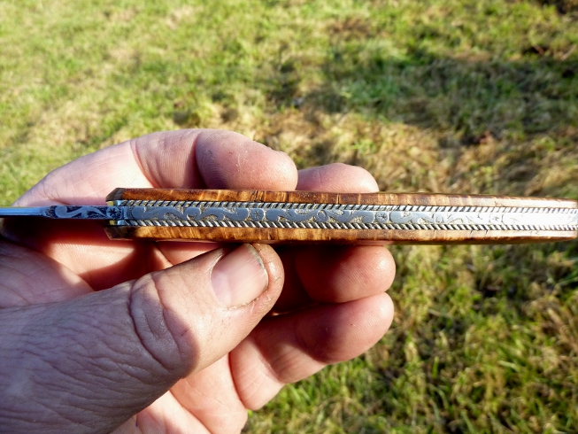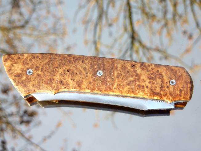 Couteau pliant liner lock de Michel Prévost, à plaquettes en loupe d'érable