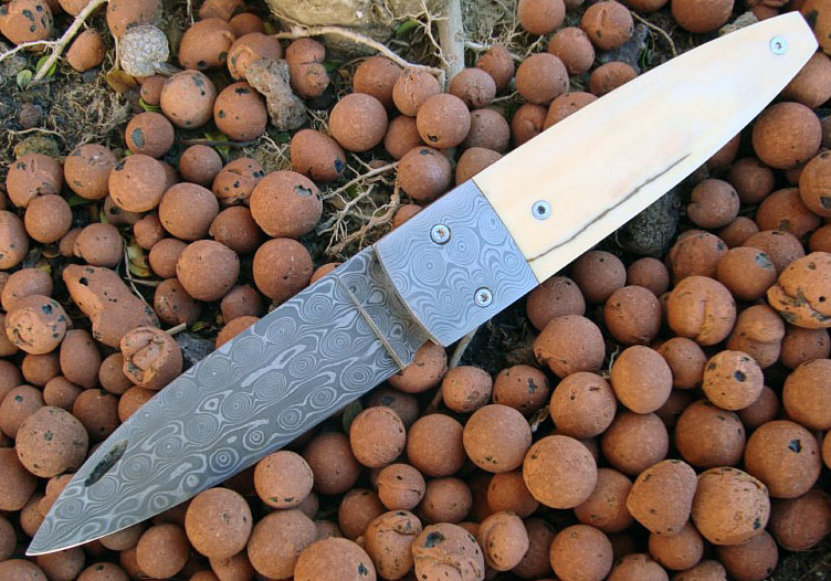 Le damas peau de grenouille est de Christian Avakian (c105, 90mnc8, 15n20), intercalaire en fibre vulcanisée, plaquettes en mammouth.