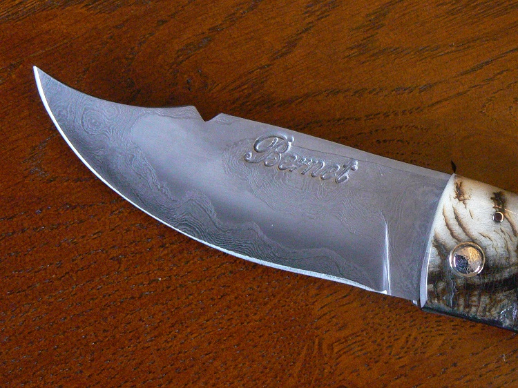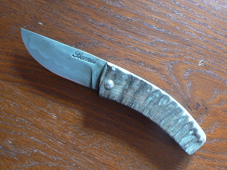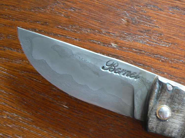 Mon projet de départ était de faire un damas de 99 couches de xc75/15n20 pour avoir beaucoup de contraste, mais j'ai étiré un peu trop fin (à peine plus de 2mm, une fois décapé au backstand).