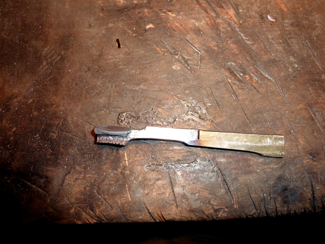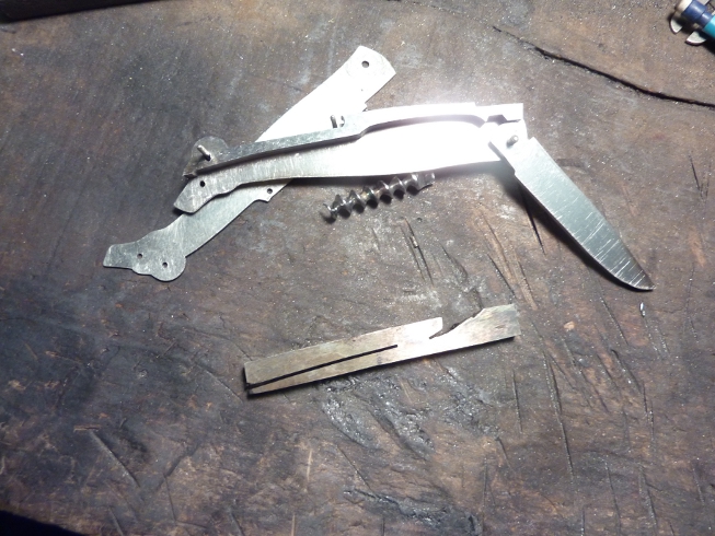 Je crois comprendre qu'il faut refendre le ressort sur la moitié de la longueur pour rendre indépendant le fonctionnement du poinçon et de la petite lame à l’arrière du couteau. Je crois comprendre aussi que le ressort ne comporte qu'un axe de fixation à l'arrière.