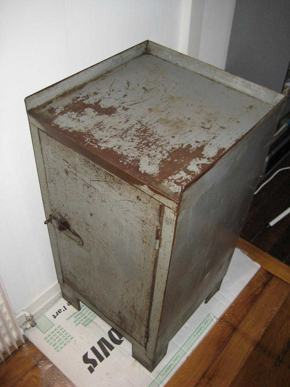 Je viens d'acquérir un petit meuble industriel. J'ai bien lu tous les messages pour le rénover, mais les techniques sont parfois différentes, et je voudrais juste être sûre d'avoir bien compris et savoir ce qui s'adapterait le mieux à ce meuble.
