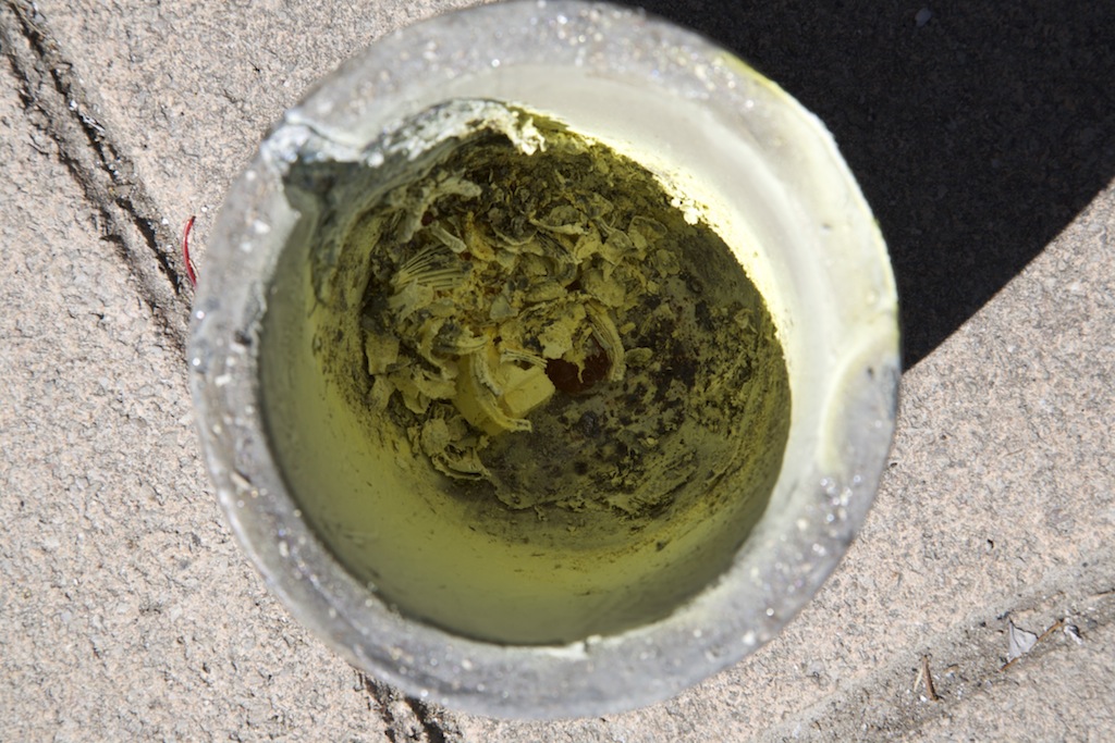Ensuite lorsque tout le métal a été coulé et que dans le creuset il ne reste que des impuretés, on peut remarquer que tout est jaune.