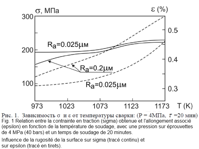 Ici, extrait d'un rapport irano-russe consacré à la recherche appliquée portant sur le soudage de feuillards en cuivre, pour des applications en physique nucléaire (accélérateurs de particules), voilà un graphique montrant l'influence de l'état de surface sur la soudure :