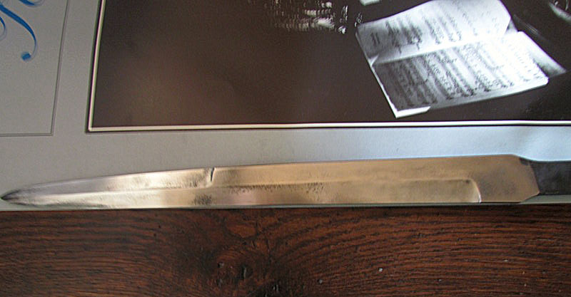 Un détail qu'il ne faut pas négliger, c'est que la pointe doit être légèrement arrondie pour ne pas se ficher dans un gros os, mais le contourner, et le tranchant rasoir au moins sur le premier tiers de la lame, de façon à couper net plutôt qu'écarter les veines et artères.