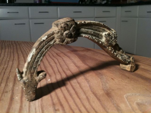 A mon avis, il s'agit d'un fragment de branche de luminaire (chandelier, lustre) ou anse de vase XIXème.