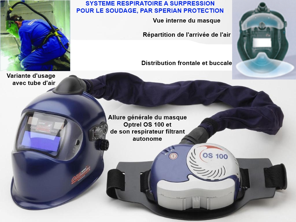 Le système est fait pour assurer une surpression dans le masque du soudeur, qui doit avoir une forme ergonomique tout en permettant à l'air non pollué de s'écouler au dehors, sans faire en sorte que le soudeur puisse respirer de l'air vicié.