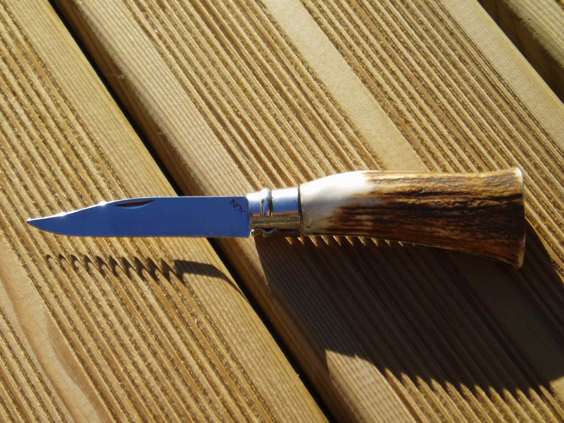 Je m'étais acheté, il y a quelques années, un Opinel type Robinson (une lame à chaque extrémité du couteau et un manche en matière plastique antidérapante). Bref, le manche s'est cassé (rupture à la fatigue !) au niveau de la virole. J'ai pu récupérer les lames (une lisse et une à dents) avec les systèmes de cran d'arrêt.
