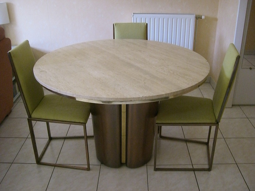 Il y a aussi une table ronde dont le plateau est en marbre posé sur du bois lui même cerclé de laiton jaune.