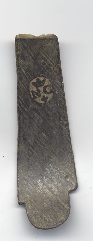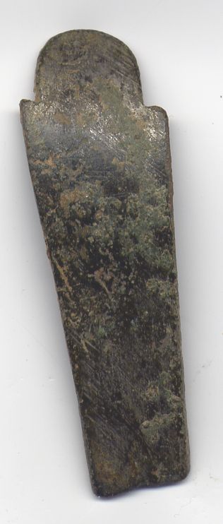 Je vous demande aussi de m'identifier cet objet qui mesure 42mm de long pour une largeur de 10mm ; son épaisseur étant de 1,5mm. Le tout est incurvé et présente une cassure sur la partie basse.