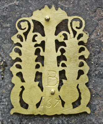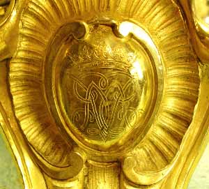 Pour commencer voici le poinçon d'état le plus connu pour le bronze: le poinçon au C couronné. Ce poinçon a été apposé sur les bronzes de février 1745 à février 1749, il fourni donc un élément pour la datation de certains bronzes bien qu'il ait été utilisé aussi pour des ouvrages fabriqués antérieurement .Le voici apposé sur une chute en bronze doré d'un bureau plat.