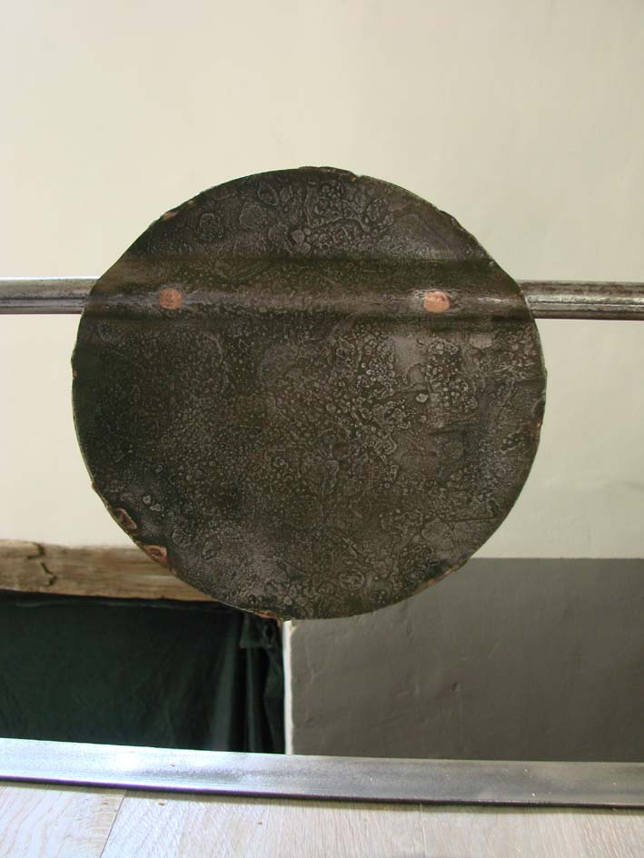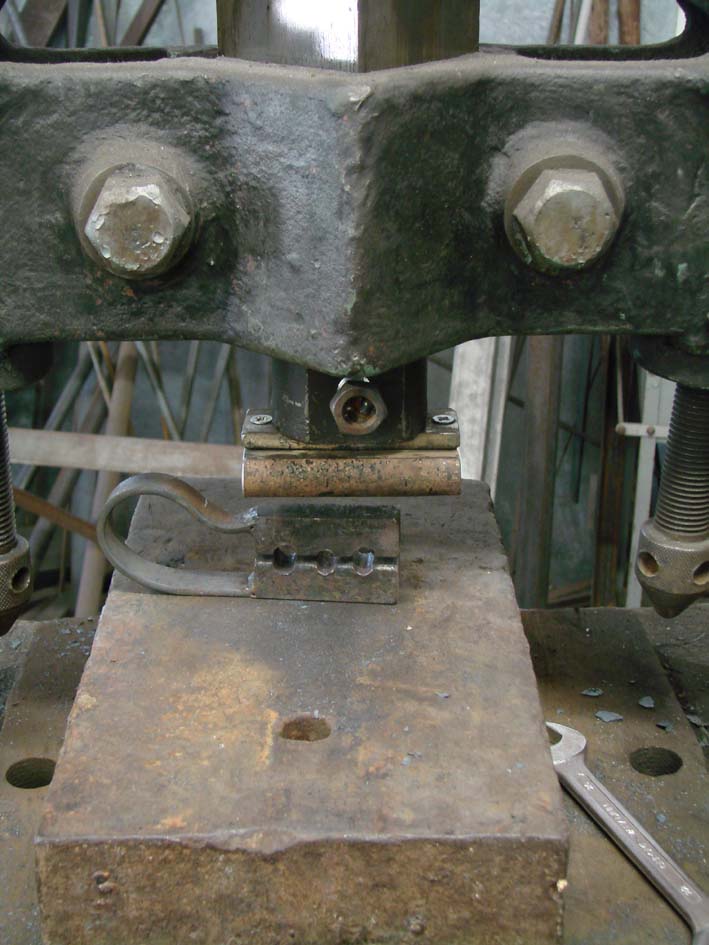 Les lisses sont bloquées dans les trous renflés du pied par des « clavettes » en cuivre.