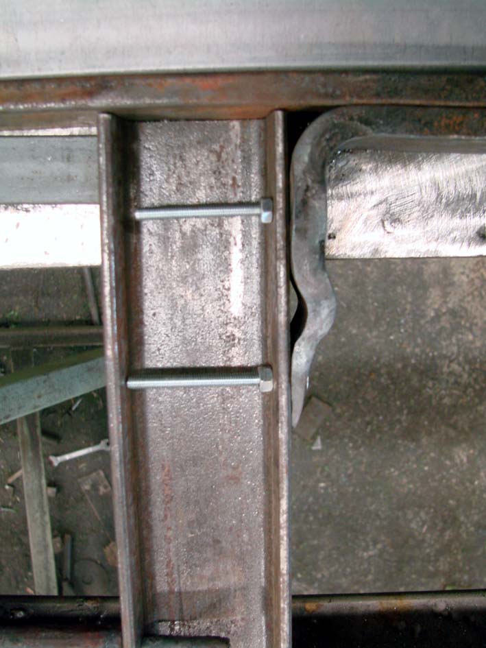 L’ensemble est vissé dans la poutre par des tire-fonds passés au feu pour en éliminer le galva et riveté sur l’habillage de la cuisine ; seule la cornière, rajoutée au dernier moment pour masquer les coupes du parquet, est soudée sur le pied et le pilastre.