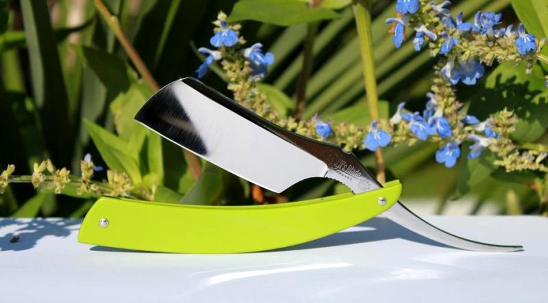voici un gros rasoir en taille 9/8 (29,5 mm de largeur). L'émouture est 1/4 évidé avec tranchant fini au backstand à 0,06 mm.