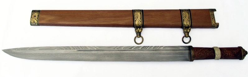 Dans mon imagination, ce Langsax aurait pu exister entre la fin du 7ème et début du 8ème siècle. C’est mon interprétation d’une arme puissante et sournoise avec des décorations directement inspirées et adaptées du trésor trouvé en 2009 dont la datation est encore à déterminer officiellement.