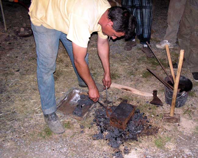 Cyrille précise : " la 1 er Loupe est du Fer pur de bas foyer et l'on a fait des burins avec, et cela fonctionne bien, sauf pour le Granit.