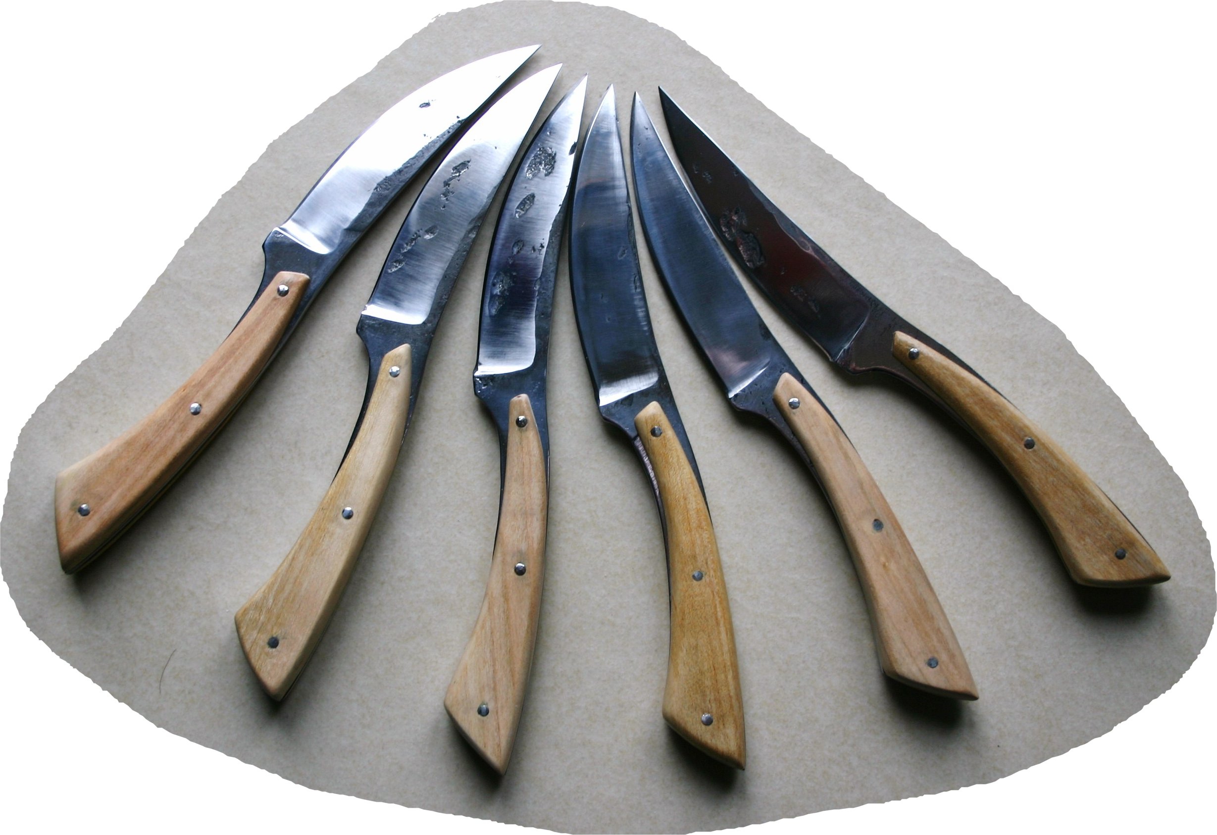 Bon, ce n'était pas facile et les manches ne sont pas tous identiques au plus près du ricasso, mais l'exercice est intéressant surtout au niveau de la forge.