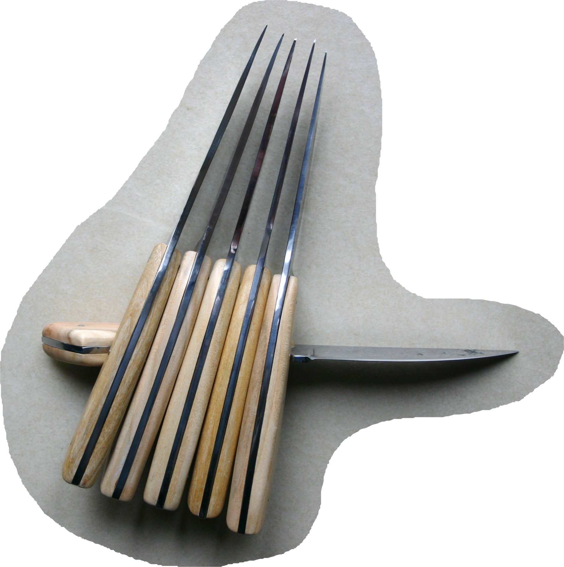 Lame forgé Acier XC75 - manches en merisier, on a enfin quelque chose qui coupe pour manger. ;-))