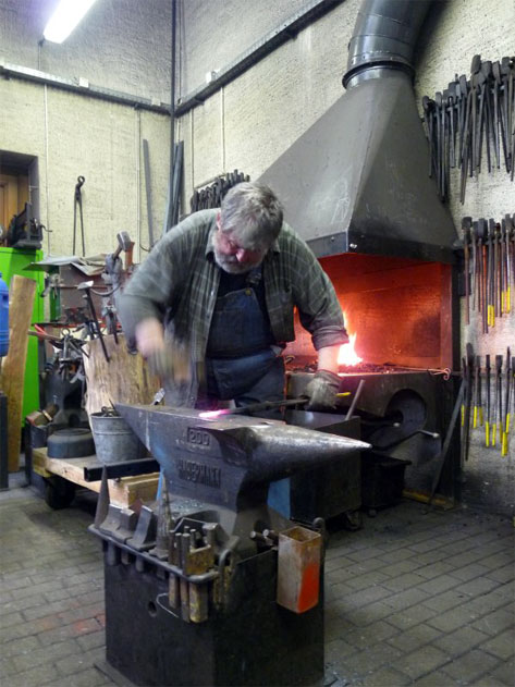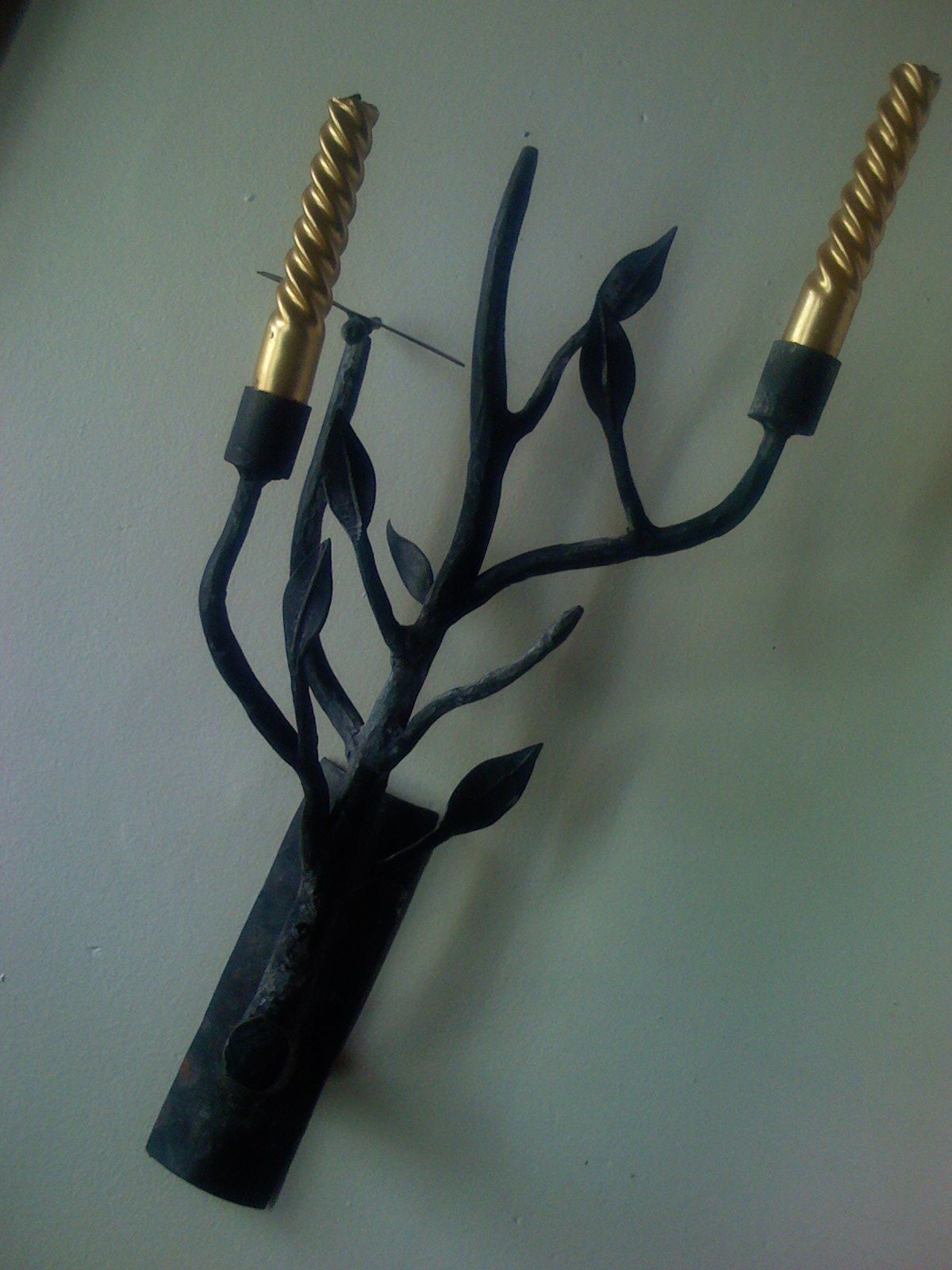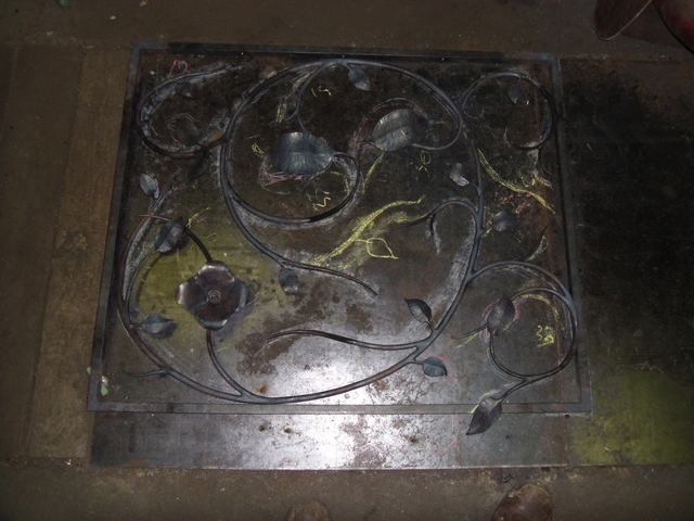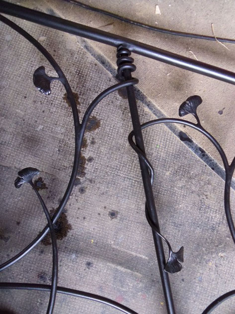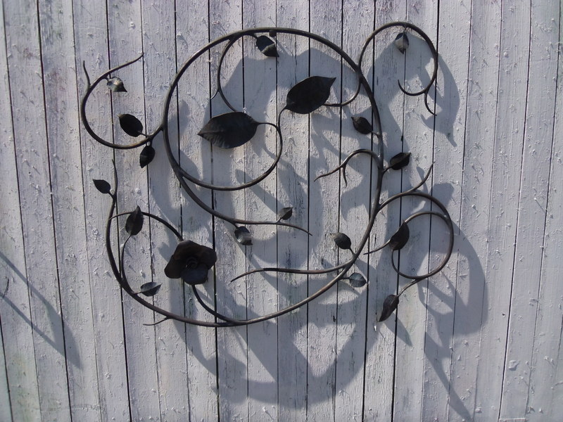 Elles sont réalisées dans du carré de 14, rond de 18 et tôle de 5 pour les plus grandes, le tout assemblé au Mig sur des ronds de 14, 12 et 10, ronds appointis au pilon. La fleur est faite de rond de 8 et de tôle de 20/10.