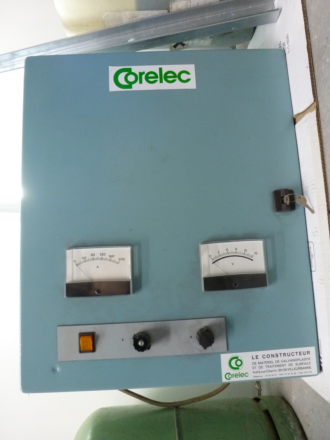 Je vends un redresseur de courant utilisé pour le traitement de surface (argenture, dégraissage électrolytique, etc.) de la marque CORELEC.